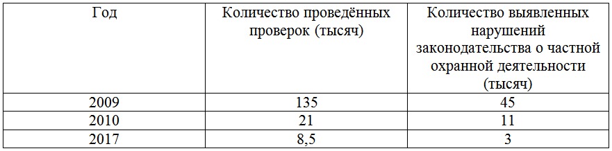 С 2009 по 2017 год, когда в России стал действовать упрощённый порядок контроля, количество проверок ЧОПов резко снизилось — почти в 16 раз. Соответственно, количество выявленных нарушений тоже уменьшилось. Но, как оказалось, позитивная динамика существует только на бумаге. Доходит даже до участия чоповцев в криминальных разборках, признают в Правительстве, объясняя это тем, что к частной охранной деятельности иногда привлекают выходцев из стран с повышенным уровнем террористических угроз или бывших уголовников.