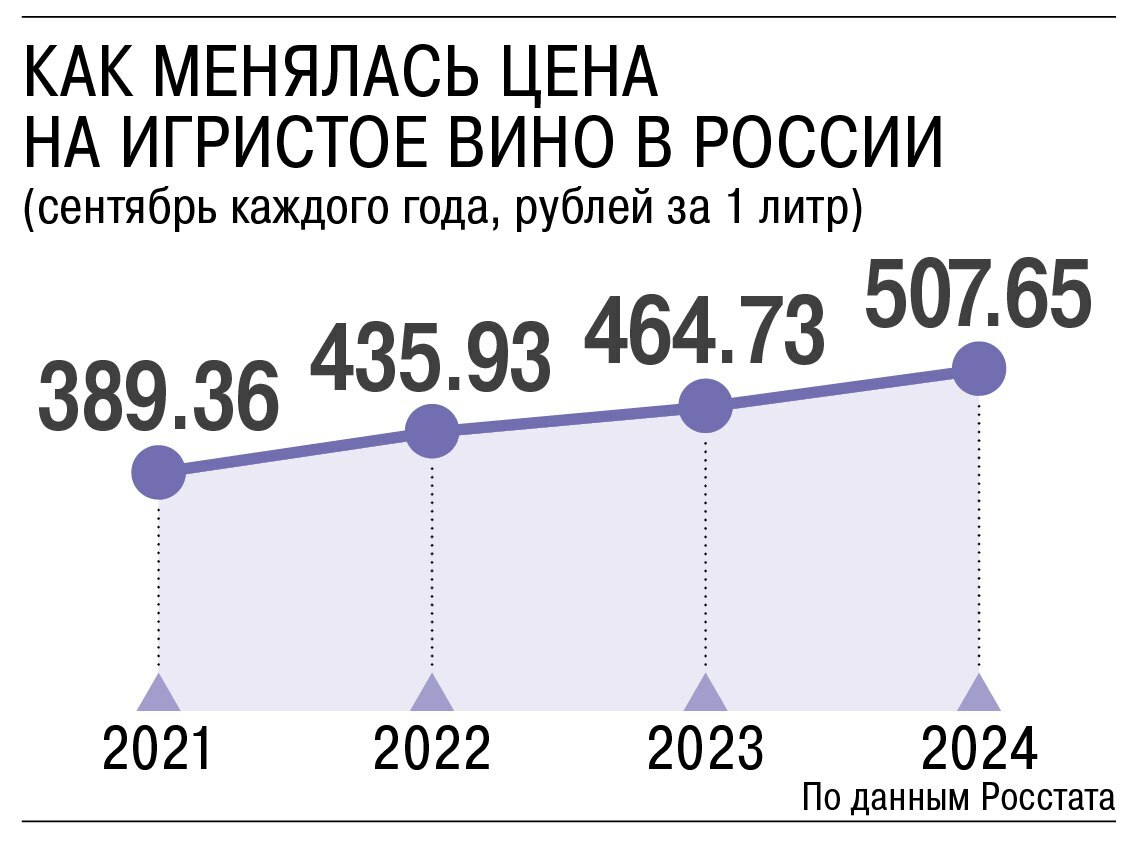 Согласно данным Росстата, в среднем по России литр игристого вина стоит 507 рублей 65 копеек. В абсолютных цифрах с начала года литр подорожал почти на 35 рублей, а в сравнении с сентябрем 2023 — сразу на 43. Впрочем, это, судя по всему, как минимум до конца года — больше ценовых скачков можно не ждать.