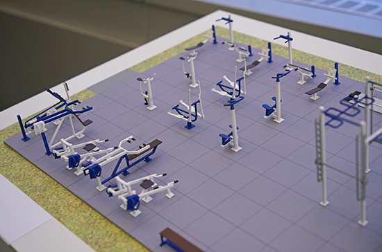 На выставке представлены макеты новых спортивных площадок, которые должны появиться во всех регионах страны к 2024 году. Эти макеты представил Минпромторг совместно с отечественными производителями спортивных товаров и оборудования.