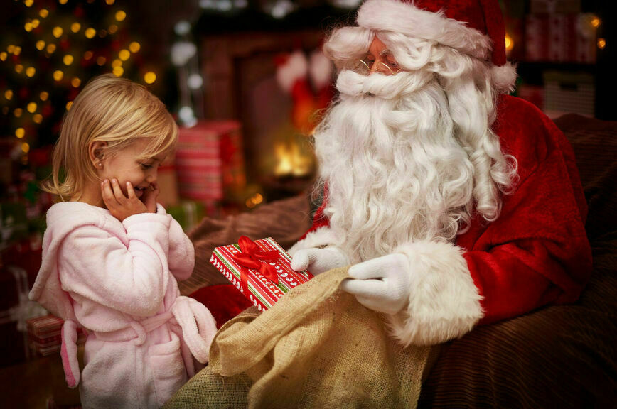 В Сочельник дети вешают в доме специальные носочки, в которых ожидают утром увидеть подарки от Санта-Клауса. Они верят, что этот сказочный персонаж в красном камзоле с белой опушкой путешествует по миру на санях, в которые запряжены летающие олени, и забирается в дома через печную трубу, чтобы оставить для детворы дары.