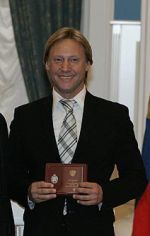 Дмитрий Вадимович Харатьян (58 лет), актёр театра и кино. Народный артист РФ. Первая же роль в кино в фильме Владимира Меньшова «Розыгрыш» (1976) принесла актёру известность. Всего Дмитрий Харатьян снялся в более 80 картинах. Среди них, «Зеленый фургон», «Гардемарины, вперед!», «Частный детектив, или Операция «Кооперация», «Виват, гардемарины!», «На Дерибасовской хорошая погода, или На Брайтон-Бич опять идут дожди», «Черный квадрат», «Московская сага» и другие.