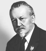Глеб Максимилианович Кржижановский (1872-1959), советский политический и государственный деятель, инженер-энергетик. Академик Академии наук СССР. Герой Социалистического Труда. Возглавлял Комитет государственных сооружений Всероссийского Совета Народного Хозяйства и Главное управление электротехнической промышленности. Под руководством Кржижановского был разработан и реализован план электрификации России (ГОЭЛРО). Являлся председателем Государственной комиссии по электрификации России и Госплана.