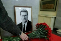 Возле венка с крестом Володин оставил цветы.