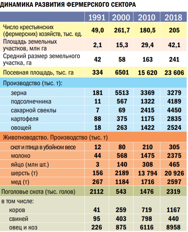 Общий рост сельхозпродукции превысил 6,2 процента, что обеспечило положительные результаты в целом по экономике. Наметилась устойчивая тенденция поисков увеличения сборов зерна за счет организационных мер и технологических решений увеличения площадей, прежде всего за счет увеличения посевов наиболее урожайных культур. Зерновое поле в прошлом году было на 2,3 миллиона гектаров больше 2011 года, в 2018 году собрано 11,4 миллиона тонн кукурузы, урожай превысил 70 центнеров с гектара. Фермерские хозяйства уже собирают 30 процентов общего сбора зерна. Это хороший показатель, а главное — возможность дальнейшего увеличения производства хлеба.