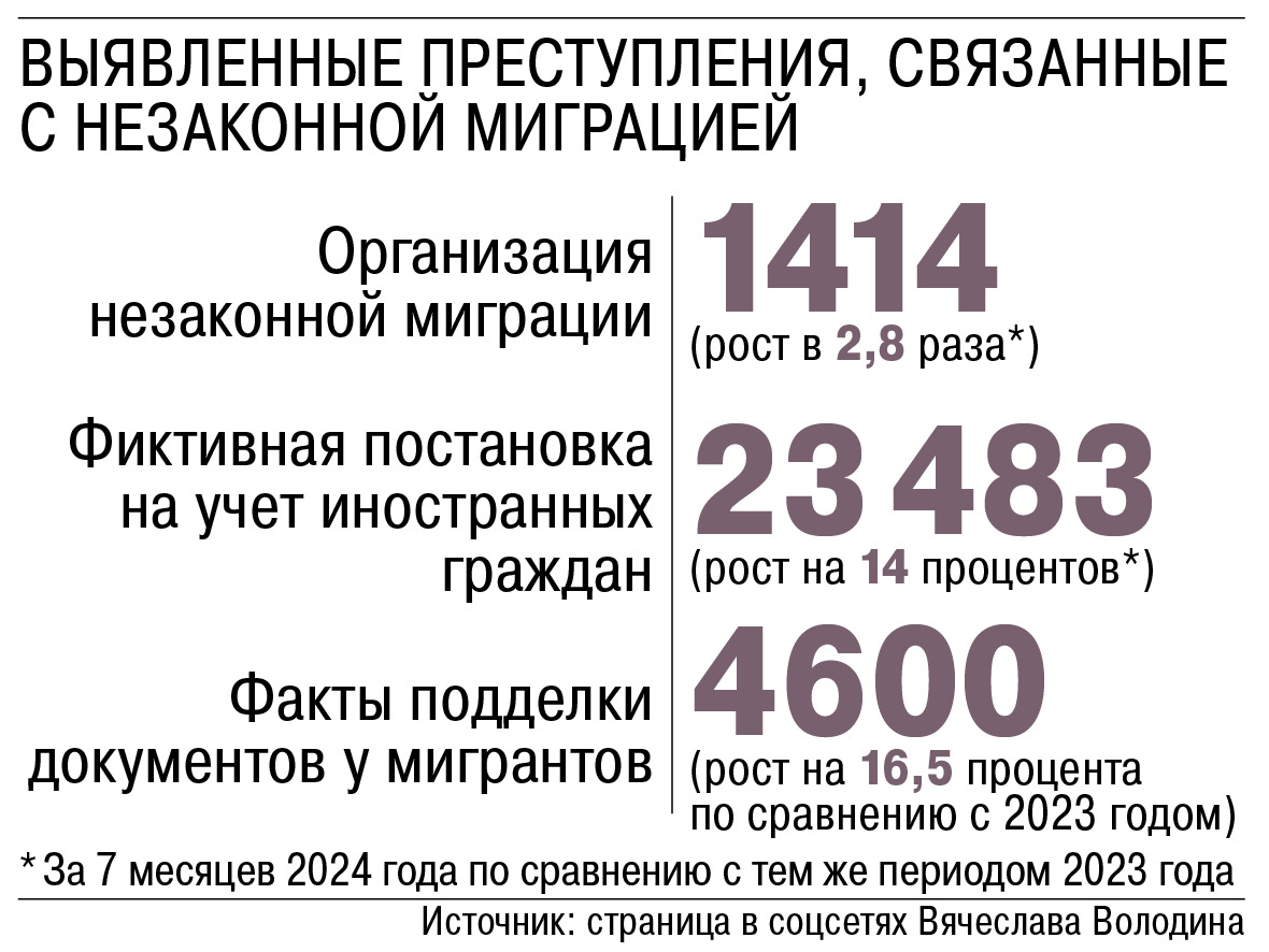 «Все это позволило создать более эффективную систему противодействия незаконной миграции и сформировать законодательное поле для борьбы с противоправными действиями», — ранее отметил на своей странице в соцсетях председатель Госдумы Вячеслав Володин.
