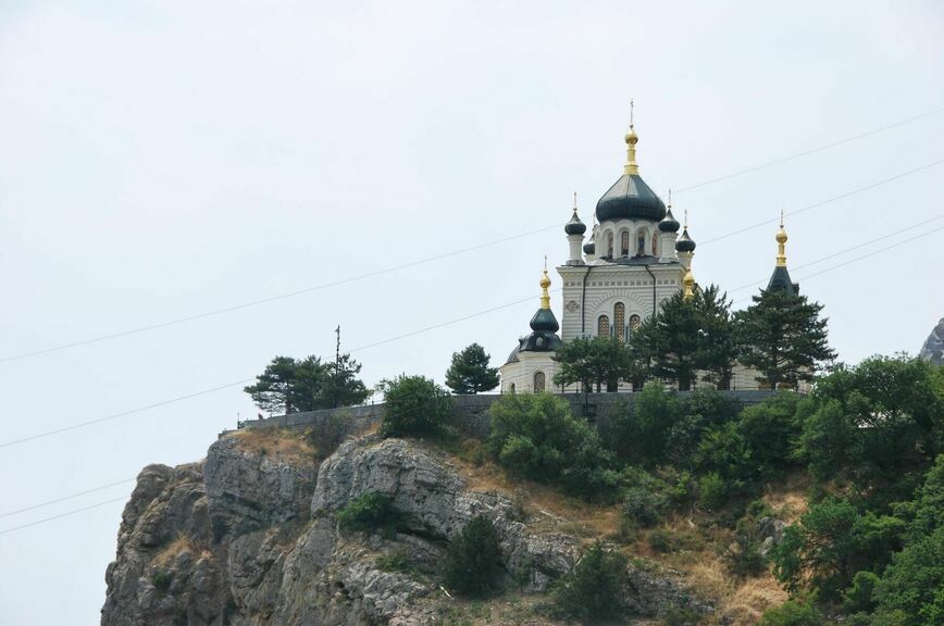 Следующая точка — Форосская церковь. Это висящий на краю пропасти на высоте 427 метров над уровнем моря храм Воскресения Христова. Найти более живописное место, пожалуй, невозможно. Приезжающие сюда туристы подолгу стоят на смотровой площадке, глядя на расстилающееся внизу самое синее в мире Черное море, сливающееся далеко-далеко у горизонта с таким же синим крымским небом. Церковь — памятник архитектуры федерального значения, построена по проекту академика Николая Чагина в 1892 году в честь чудесного спасения российского императора Александра Третьего во время крушения поезда на станции Борки Курско-Харьковской железной дороги.