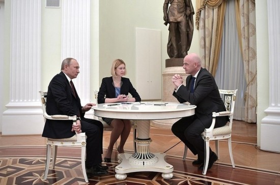 Президент России Владимир Путин встретился с главой Международной федерации футбола (FIFA) Джанни Инфантино, сообщили в пресс-службе Кремля. Об этом пишет «Царьград».