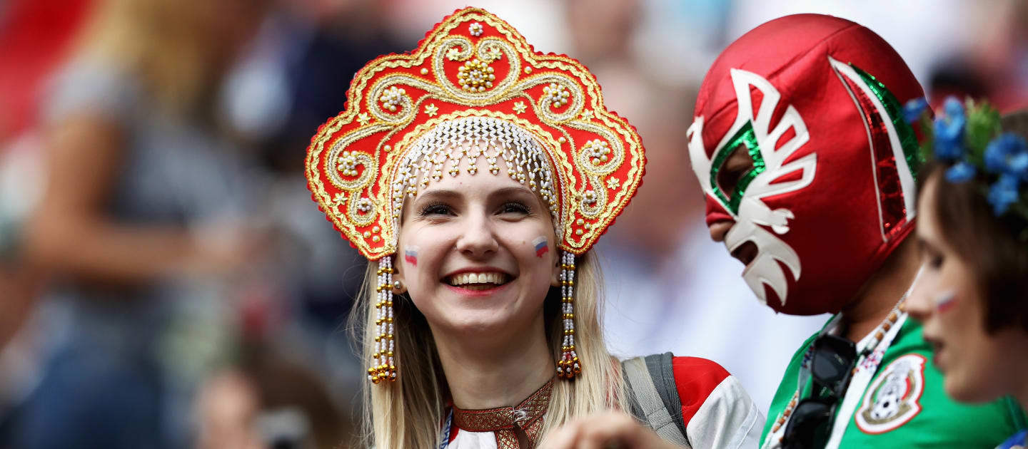 Фанзоны в Москве на Воробьёвых горах и в Санкт-Петербурге на Конюшенной площади — настоящий карнавал. Волонтёры, которых на турнире более 17 тысяч, учатся не по дням, а по часам и готовы помочь каждому. Российское ноу-хау — бесплатный проезд для болельщиков — позволяет им легко передвигаться между городами. При этом поезда ходят так, что по ним можно сверять часы. Важнейшим организационным фактором и одновременно элементом безопасности стал паспорт болельщика (FanID), который впервые применяется на турнирах под эгидой Международной федерации футбола (FIFA), а «тестовые испытания» прошёл как раз во время зимней Олимпиады в Сочи.