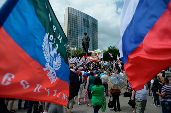 Участники митинга в поддержку Донецкой Народной Республики (ДНР) на площади Ленина в Донецке.Фото: РИА Новости/Максим Блинов