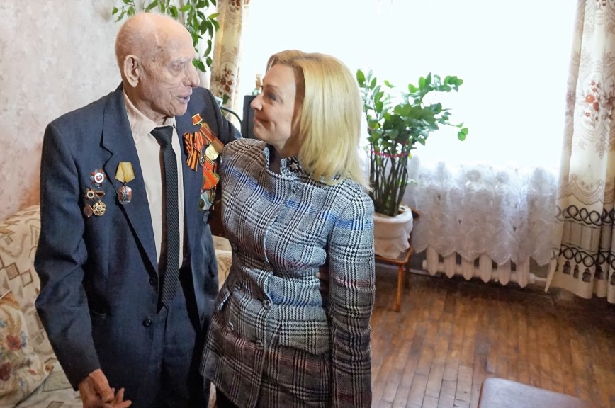Также Тимофеева навестила ветерана Александра Оголенко. Он воевал на Кавказе, участвовал в освобождении Ставрополя от фашистов в январе 1943 года. На его кителе - орден Великой Отечественной войны 2-й степени, медали «За боевые заслуги», «За оборону Кавказа», «За победу над Германией», множество юбилейных наград.