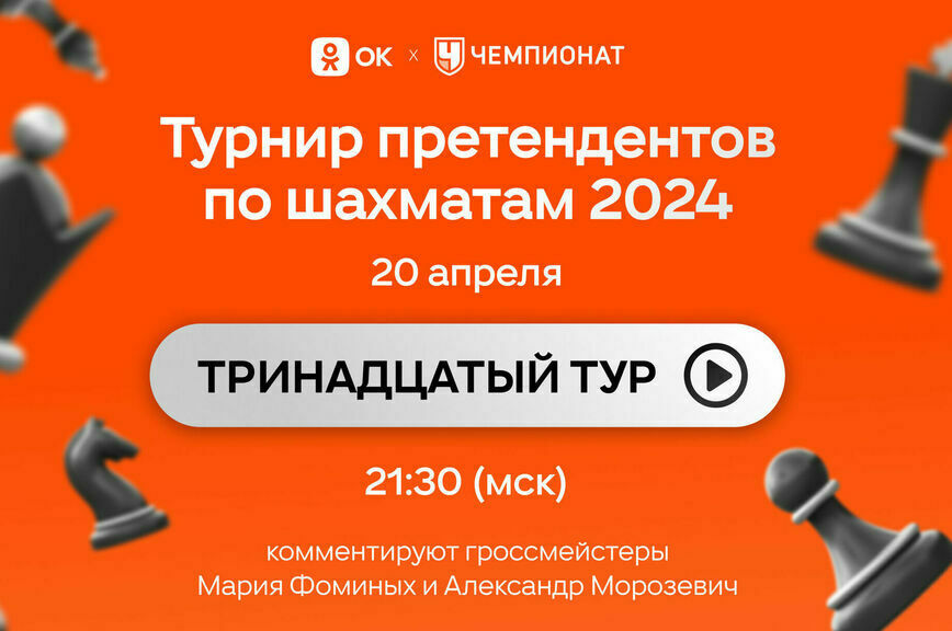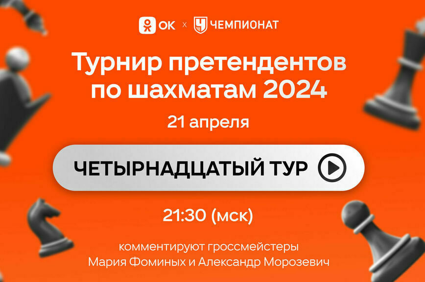 Одноклассники проведут эксклюзивные прямые эфиры Турнира претендентов по шахматам 2024 года, который в этом году состоится в Торонто. C 3 по 23 апреля в группе ОК можно будет посмотреть все 14 туров с профессиональными комментариями от ведущих гроссмейстеров Марии Фоминых и Александра Морозевича, и читать новости турнира и мира шахмат. Первая трансляция состоится 4 апреля в 21:30 по московскому времени.