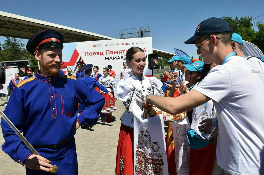 В Волгограде ребят с хлебом-солью, хороводами и песнями встретил казачий ансамбль. Также на станции их поприветствовала заместитель губернатора Волгоградской области Зина Мержоева. Она обратила внимание, что всех участников проекта объединяет история Победы советского народа в годы Великой Отечественной войны и память братских народов.