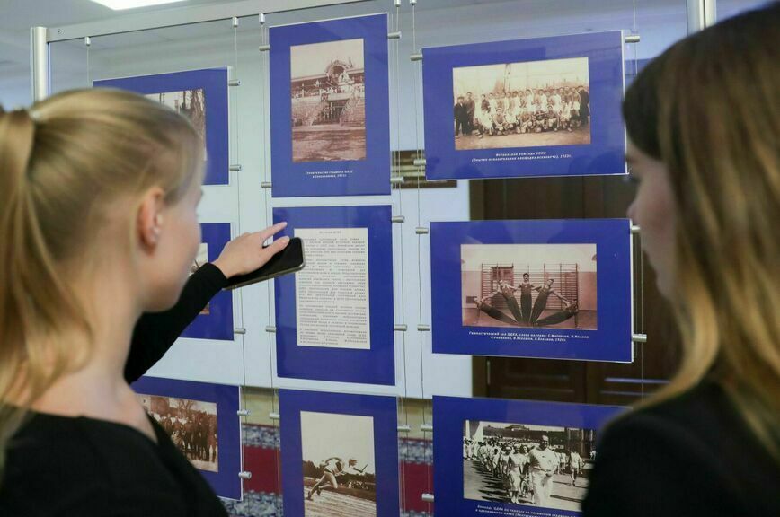 Например, на представленных фото запечатлены моменты выступлений в 1952 году двукратного олимпийского чемпиона по стрельбе Анатолия Богданова, двукратной олимпийской чемпионки в метании диска Нины Пономаревой, олимпийского чемпиона по тяжелой атлетике Трофима Ломакина. Можно увидеть и современные фотографии — моменты выступлений в 2000 году четырехкратного олимпийского чемпиона по спортивной гимнастике Алексея Немова. Также представлено фото двукратного олимпийского чемпиона в прыжках в воду, единственного в истории обладателя 8 олимпийских наград в этом виде спорта Дмитрия Саутина, сделанное в 1996 году.