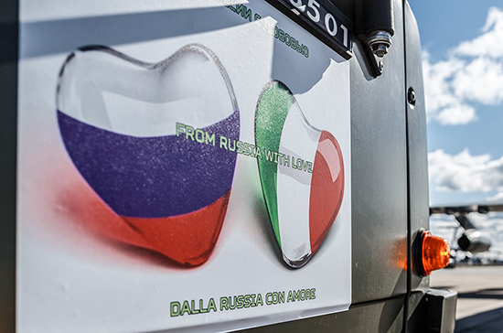 Интернет-издание Bergamo News также указало, что «российские медики, участвующие в гуманитарной миссии «Из России с любовью» оказали ценную помощь полевому госпиталю в Бергамо, оборудованному в помещении городской ярмарки, и провели дезинфекцию многих домов для престарелых, разбросанных по всей территории провинции». В публикации подчёркивается, что российские специалисты с конца марта работали «в районах Северной Италии, наиболее поражённых COVID-19».