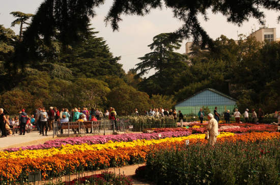 Одной из главных визитных карточек Никитского ботанического сада вот уже много лет является традиционный Бал хризантем. В этом году бал проходит в 65-й раз, и на нем «танцуют» под теплым осенним крымским солнцем цветы 333 сортов. Открытие бала собрало несколько тысяч человек, среди которых туристы из самых разных уголков нашей страны. Высокий курортный сезон завершился, однако отдыхающие не спешат покидать полуостров, тем более что и купальный сезон ещё окончательно не закрыт — температура воды в море достигает 18-19 градусов.